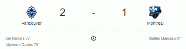 Formazione: Bush; Petrasso, Cabrera, Raitala (Choinière 78’), Lovitz; Piette, Taïder, Krolicki, Edwards (Vargas 70’), Piatti; Mancosu A disposizione e non utilizzati: Pantemis, Duvall, Shome, Oduro, Donadel Reti: VAN – Kamara 63’ VAN – Davies 70’ MTL – Mancosu 81’ Ammoniti: VAN –…