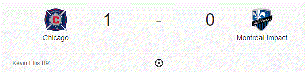 Fromazione: Bush; Petrasso, Fanni, Raitala, Lovitz; Piette, Silva (Béland-Goyette 73′), Taider (Mancosu 90′); Piatti, Jackson-Hamel (Oduro 78′), Edwards A disposizione e non utilizzati: Diop, Duvall, Cabrera, Krolicki Reti: CHI – Ellis 89′ Ammoniti: MTL – Petrasso CHI – Vincent and Adams