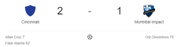 Formazione: Bush; Sagna, Cabrera (Choinière 83′), Diallo, Lovitz; Piette, Azira, Taïder; Okwonkwo (Novillo 74′), Urruti (Raitala 76′), Piatti. A disposizione e non utilizzati: Diop, Camacho, Shome, Jackson-Hamel Reti: MTL – Okwonkwo 14′, Piatti 15′ e 80′ORL – Dwyer 91′ Ammoniti:ORL…