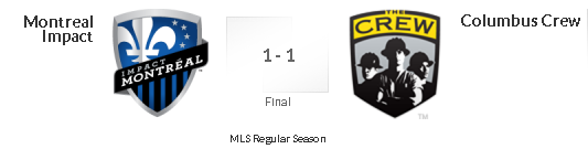 L’Impact muove la classifica e resta al comando delle Eastern Conference con 14 punti, dopo il pareggio ottenuto oggi per 1-1 contro il Columbus Crew allo Stadio Saputo dopo il rinvio annunciato venerdi scorso a causa della neve.