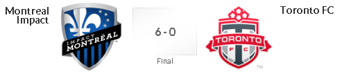 Una solenne batosta che passera’ alla storia. Non si puo’ dire niente di piu’ sulla partita che ieri sera ha visto l’Impact sotterrare con un punteggio tennistico il malcapitato Toronto FC. La partita era cominciata bene per gli ospiti che hanno colpito un palo dopo soli due minuti. Si e’ trattato pero’ solo di un fuoco di paglia. Una volta prese le misure la squadra di casa ha ribaltato la partita come un calzino chiudendo la prima frazione di gioco sul 3-0 con le reti di uno scatenato Mapp al 24′ e che ha anche fornito gli assit per le reti di Paponi al 33′ e Di Vaio al 44′