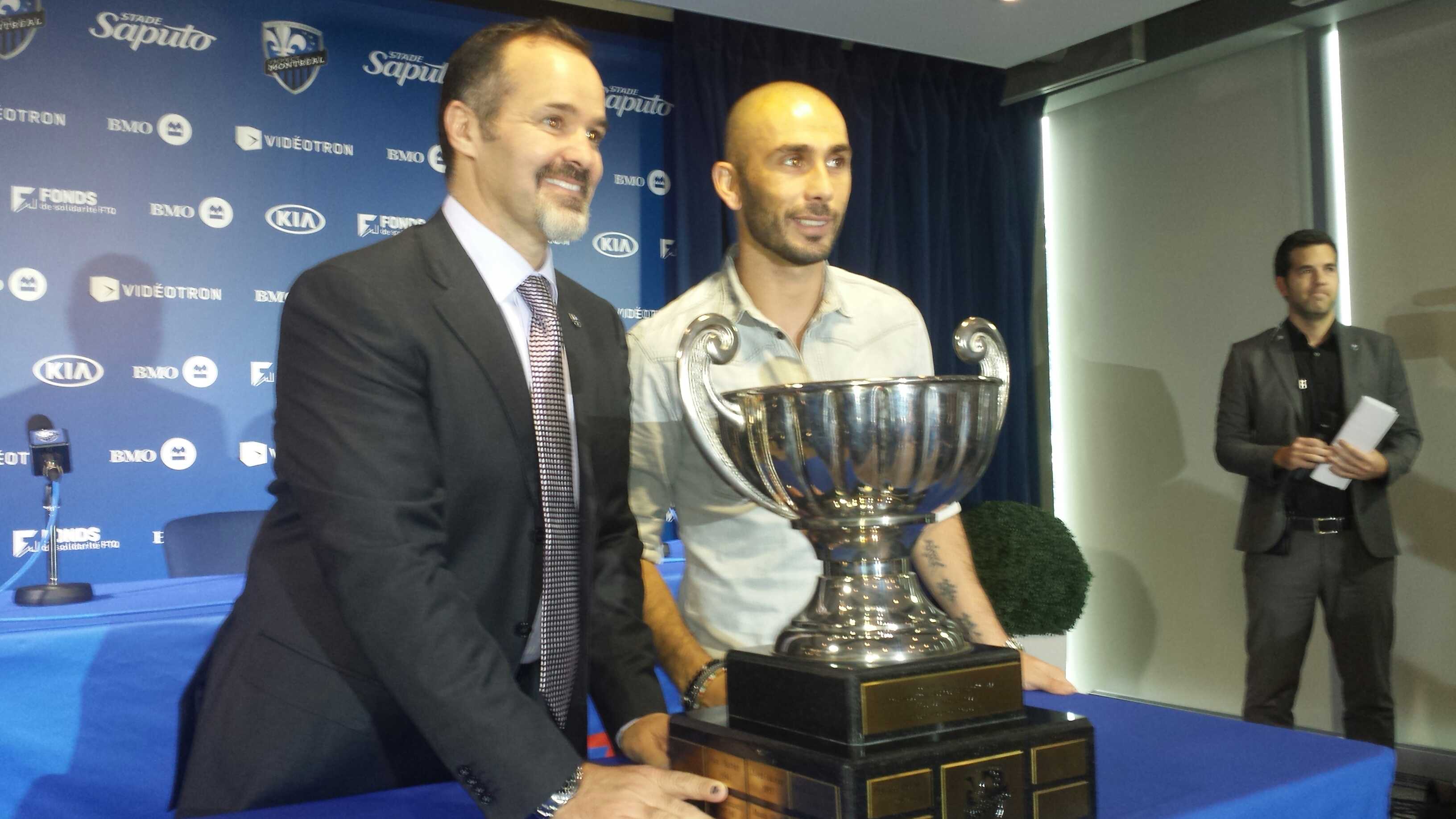 A margine della conferenza stampa di oggi, Marco Di Vaio ha ricevuto il trofeo Giuseppe Saputo che va al MVP eletto dagli abbonati.