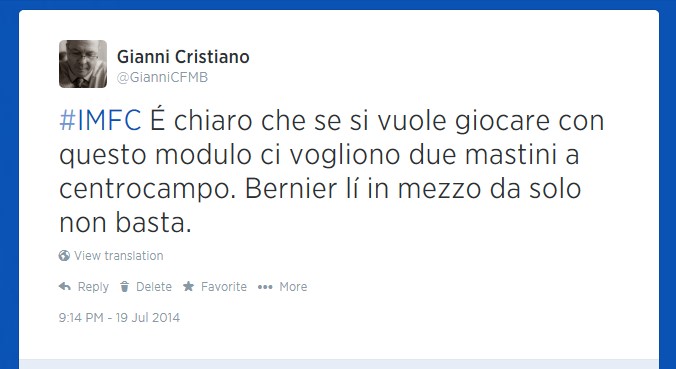 • Grazie per il commento Mike. Effettivamente a centrocampo ci vorrebbe qualcuno come Ambrosini, ma dubito che sarebbe ben accetto o compreso. Penso ancora ai commenti che ho sentito quando è arrivato Nesta (qui non hanno ancora realizzato la portata di una presenza simile…). Figuriamoci un altro italiano a fine carriera…