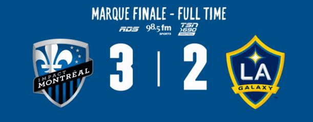 Un calcio di punizione di Didier Drogba in pieno recupero ha permesso al Montreal Impact di battere il LA Galaxy con il punteggio di 3-2 in un Saputo Stadium ancora una volta tutto esaurito