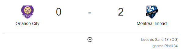 Formazione: Bush; Duvall (Cabrera 77′), Fanni, Camacho, Lovitz; Piette, Krolicki (Shome 84′), Taider; Piatti, Mancosu (Edwards 65′), Silva A disposizione e non utilizzati: Diop, Petrasso, Raitala, Jackson-Hamel Reti: MTL – Sané (A) 13′ MTL – Piatti 84′ Ammoniti: ORL – Kljestan